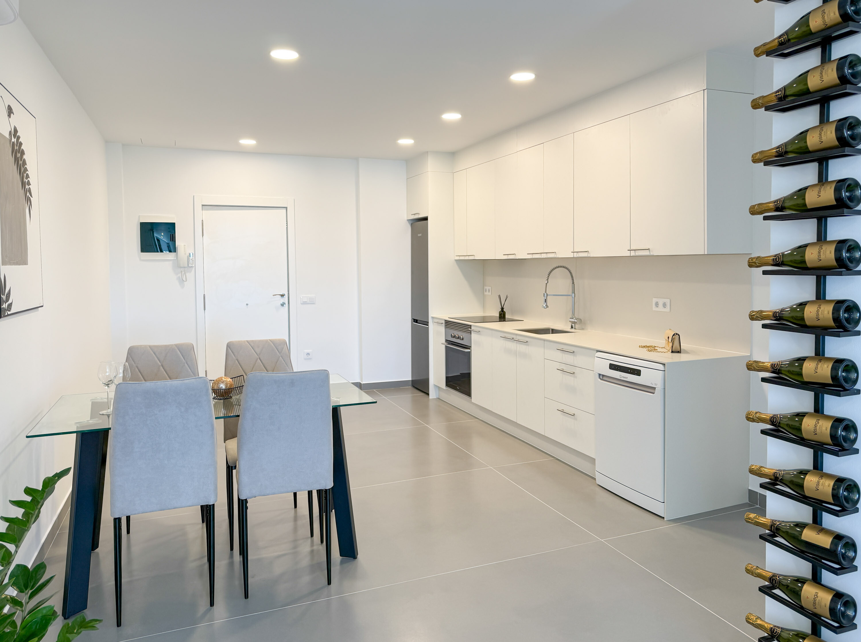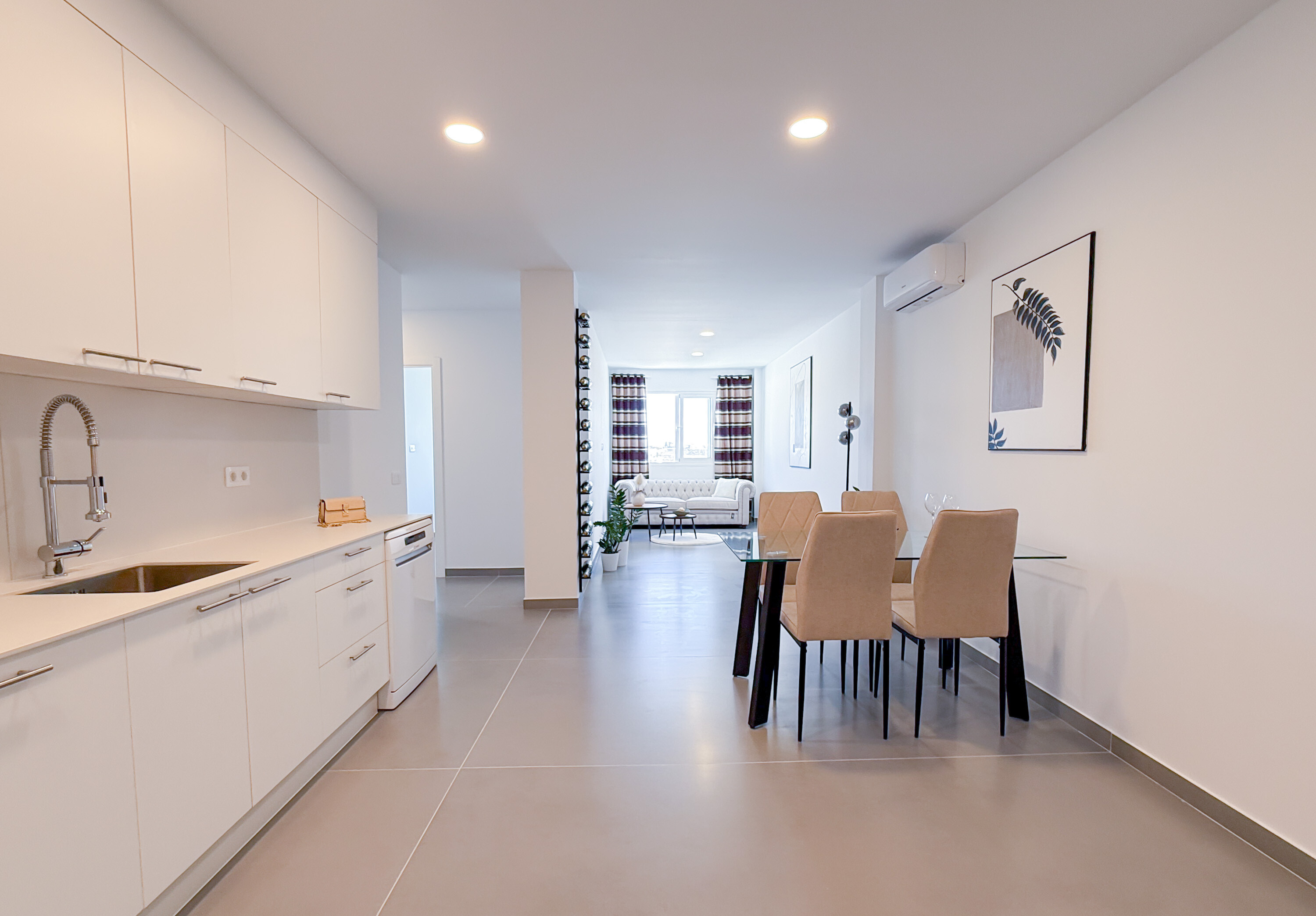 El apartamento tiene 2 dormitorios, salón con cocina, baño y aseo.