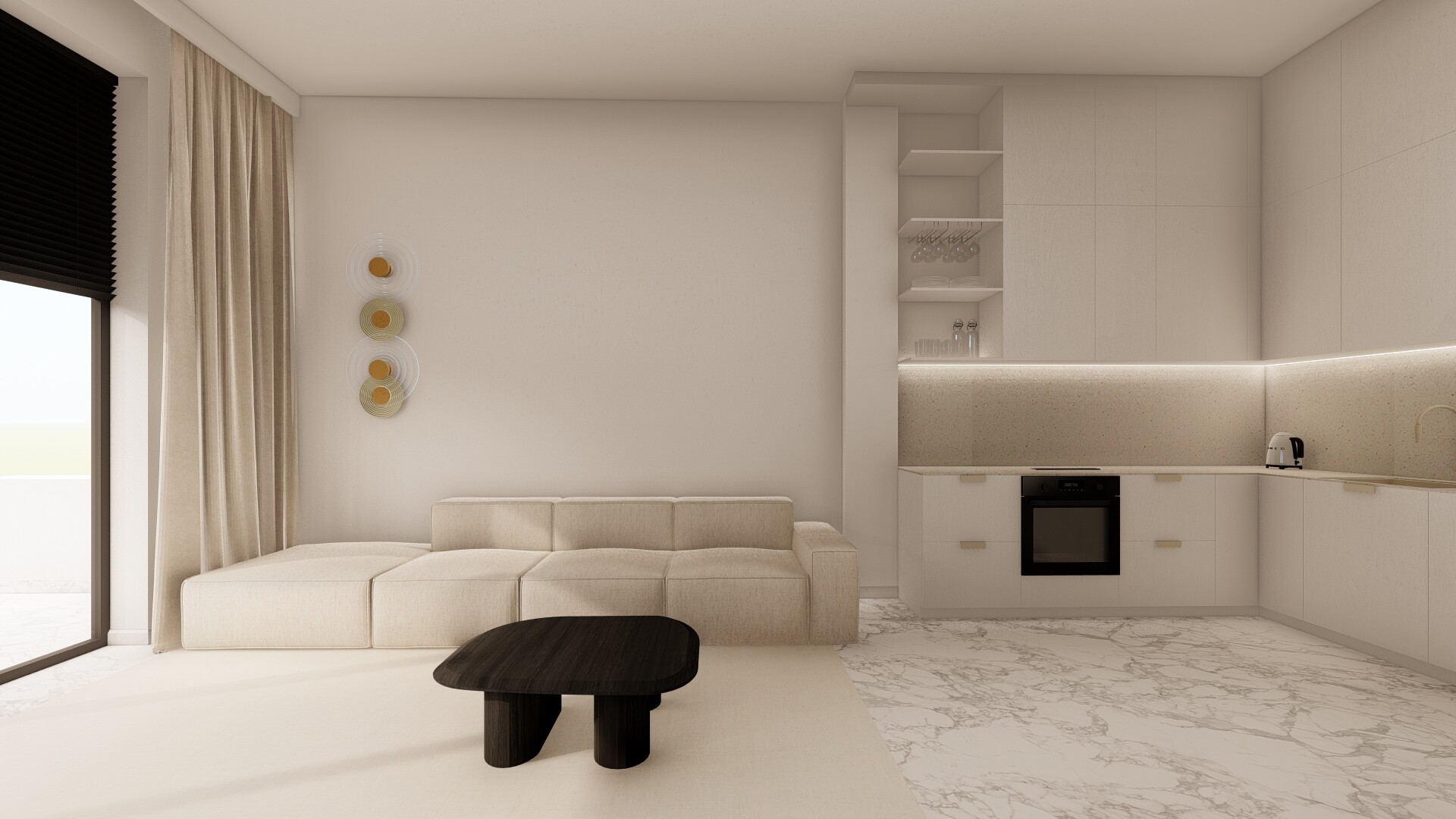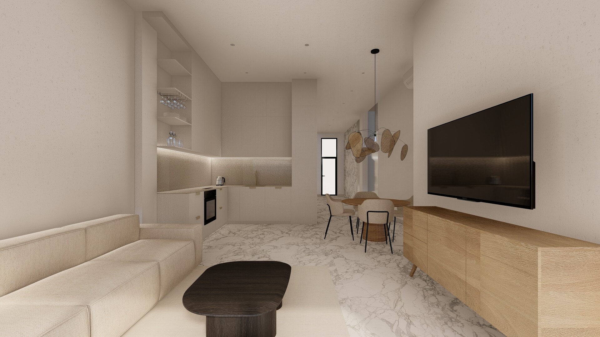 Kompletnie wyposażone mieszkanie, w którym zainstalowano: