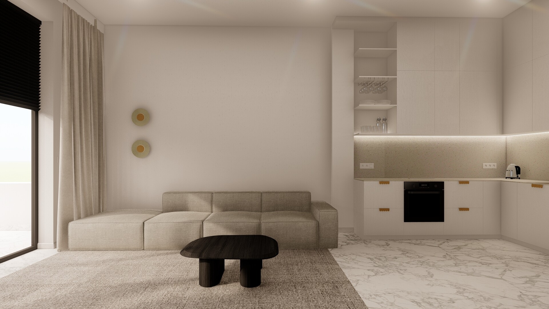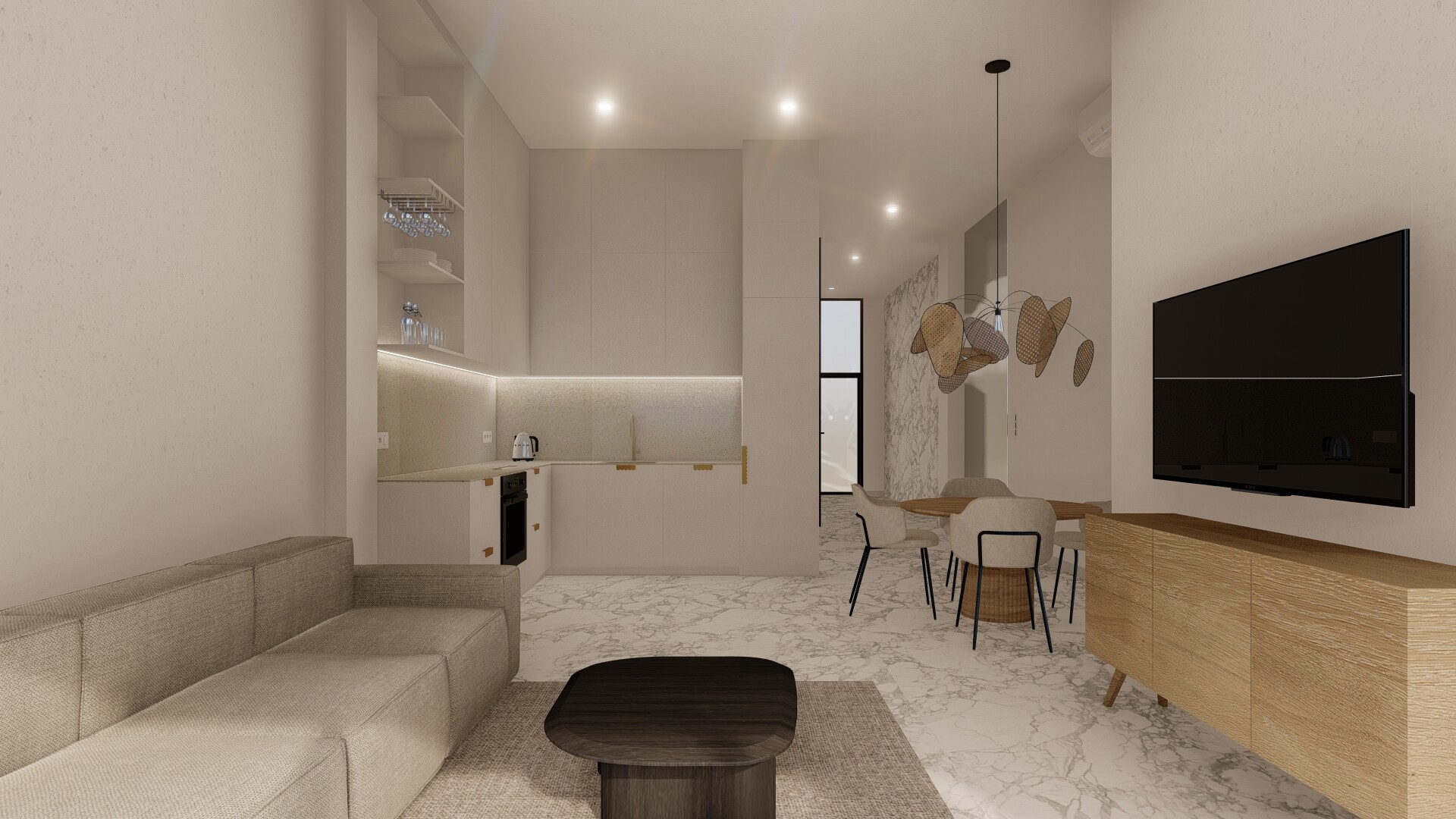 Kompletnie wyposażone mieszkanie, w którym zainstalowano: