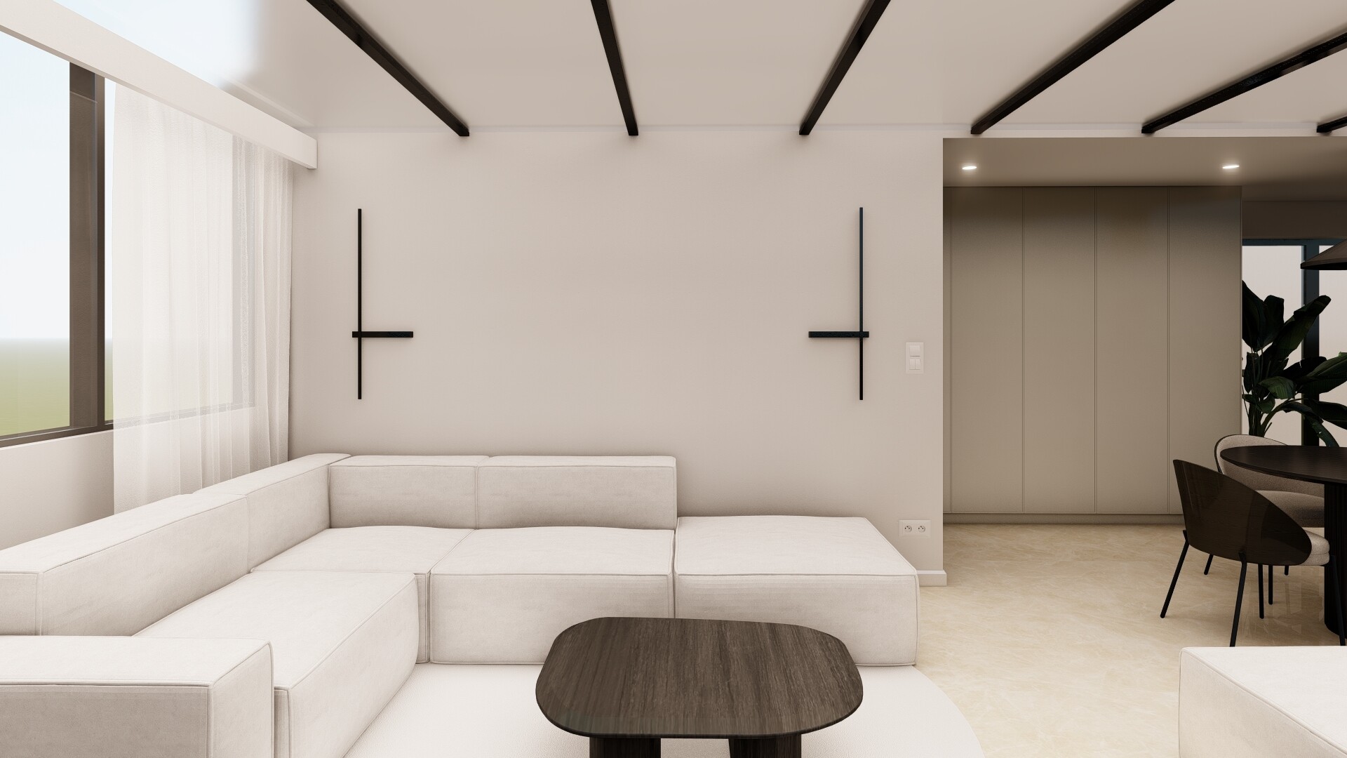 W apartamencie ulokowana jest sypialnia, salon z kuchnią, łazienka oraz taras.